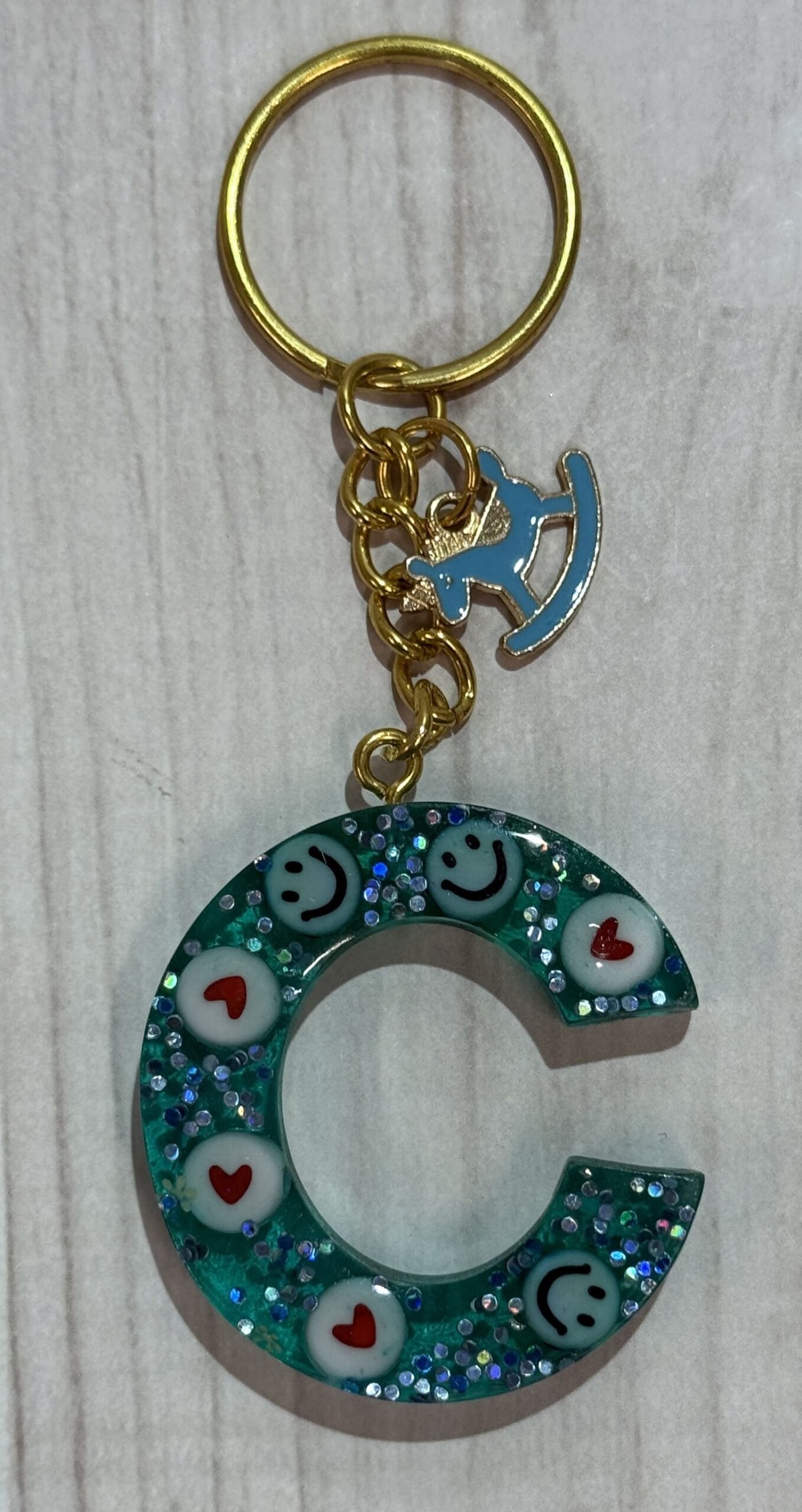 Energetyczny, pełen pozytywnej energii breloczek wykonany z turkusowej żywicy, ozdobiony brokatem oraz uroczymi wtopami przedstawiającymi uśmiechnięte buźki i czerwone serduszka. Złote dodatki i słodki charms w kształcie niebieskiego konika dodają mu wyjątkowego, radosnego charakteru. Idealny jako prezent albo codzienny poprawiacz humoru.